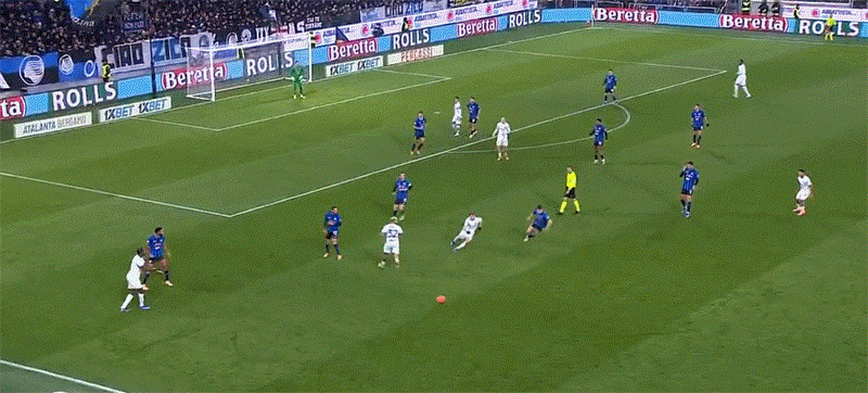 有这么一幕画面:国米与亚特兰大之战里,德凯特拉雷沿右路衔枚疾进,巴雷拉追不上,迪马尔科回追出脚,非但未能实现断球,甚至把球踢出边线都没能做到。于是CDK控球、转移,形成了一次绝佳的反击机会。